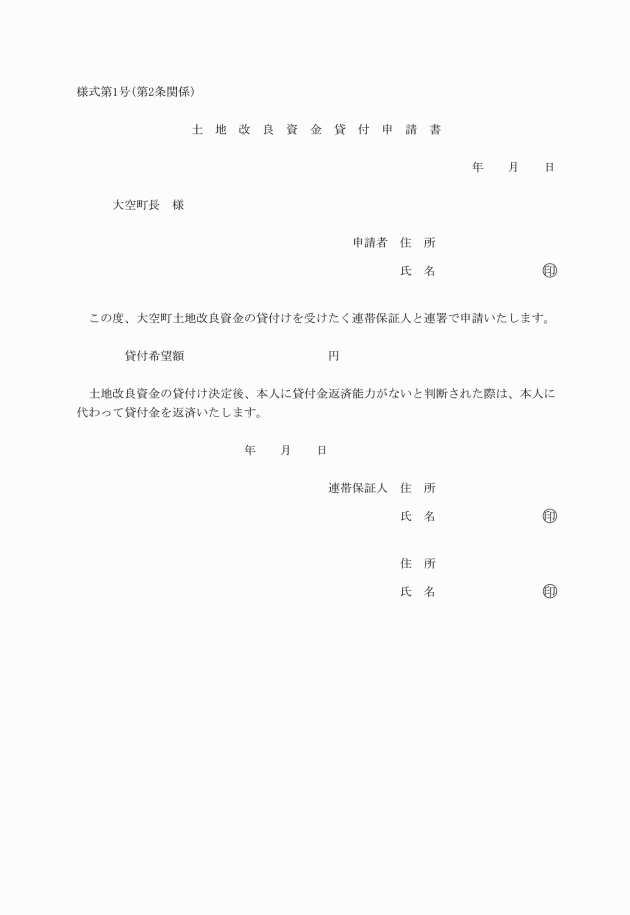 ○大空町土地改良資金貸付条例施行規則